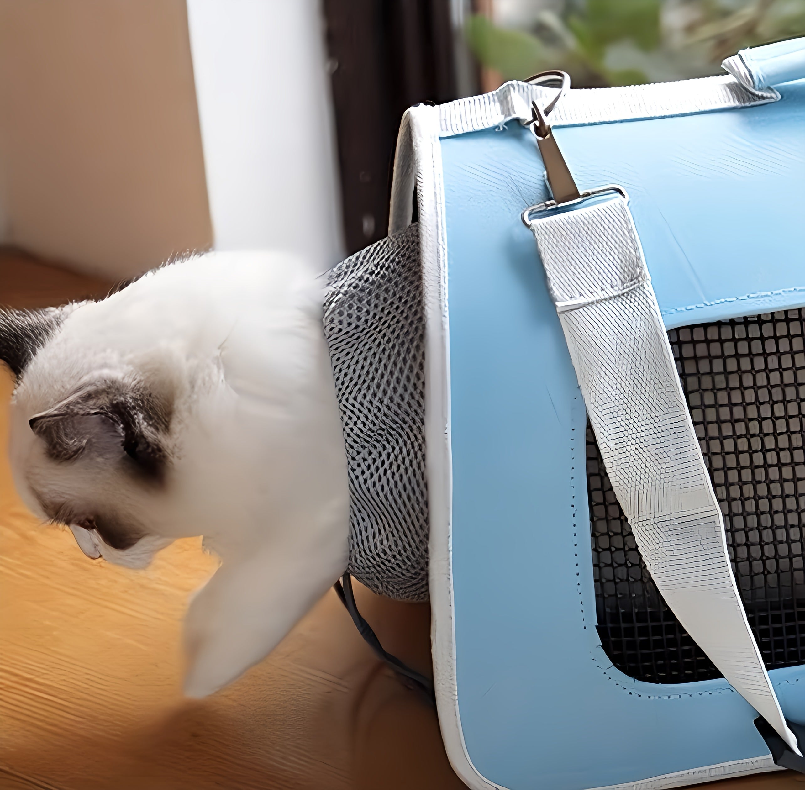 This bag is designed to carry cats. offering them a safe and comfortable place to travel.