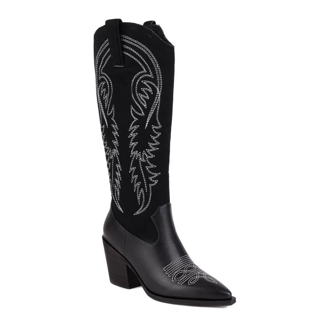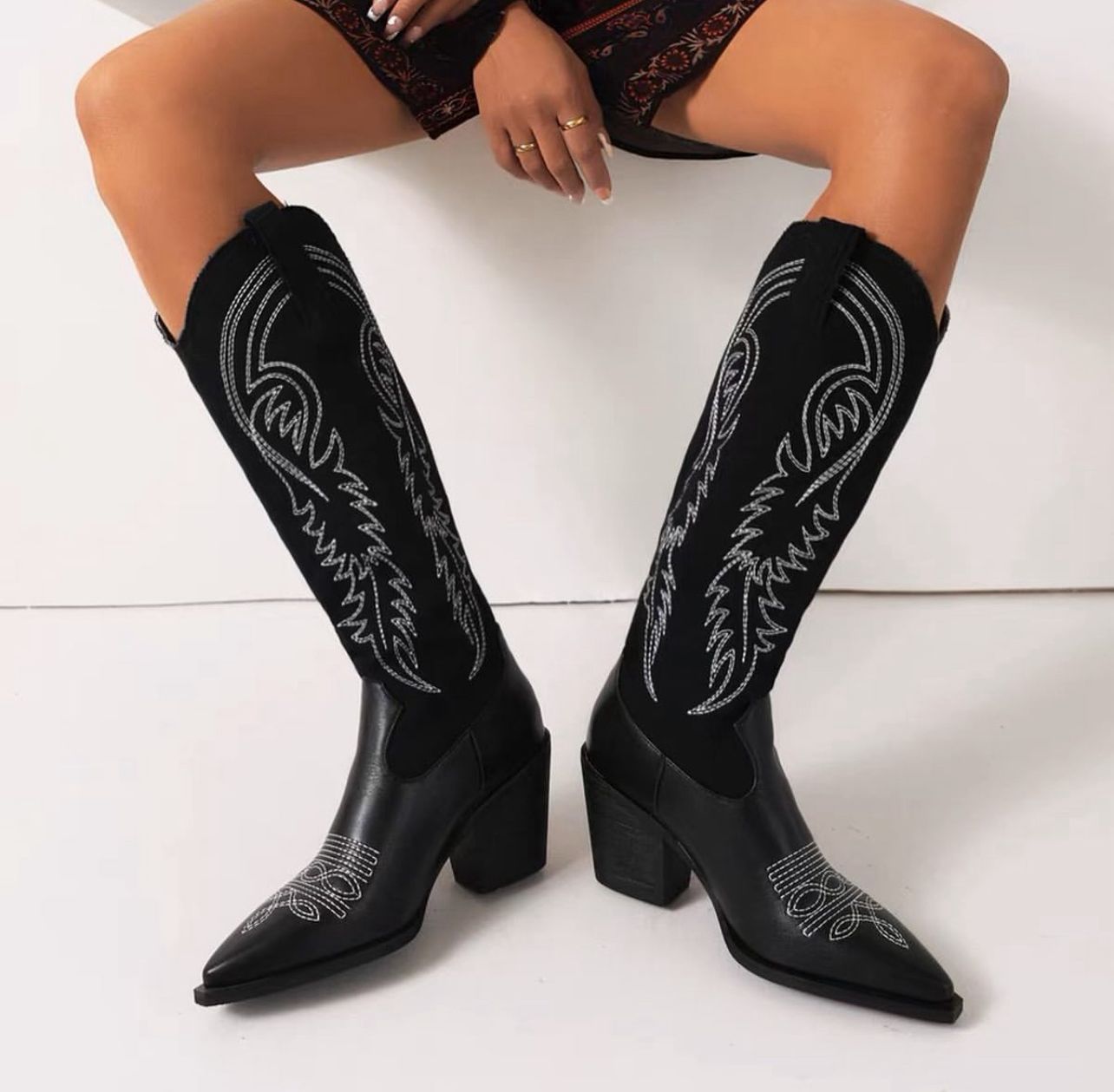Embroidered Split Suede Boots