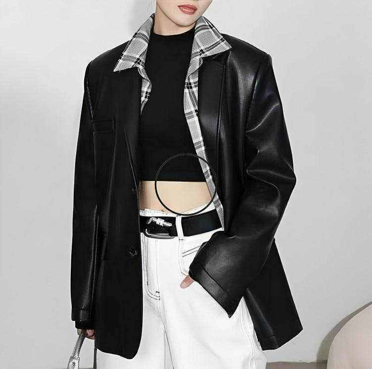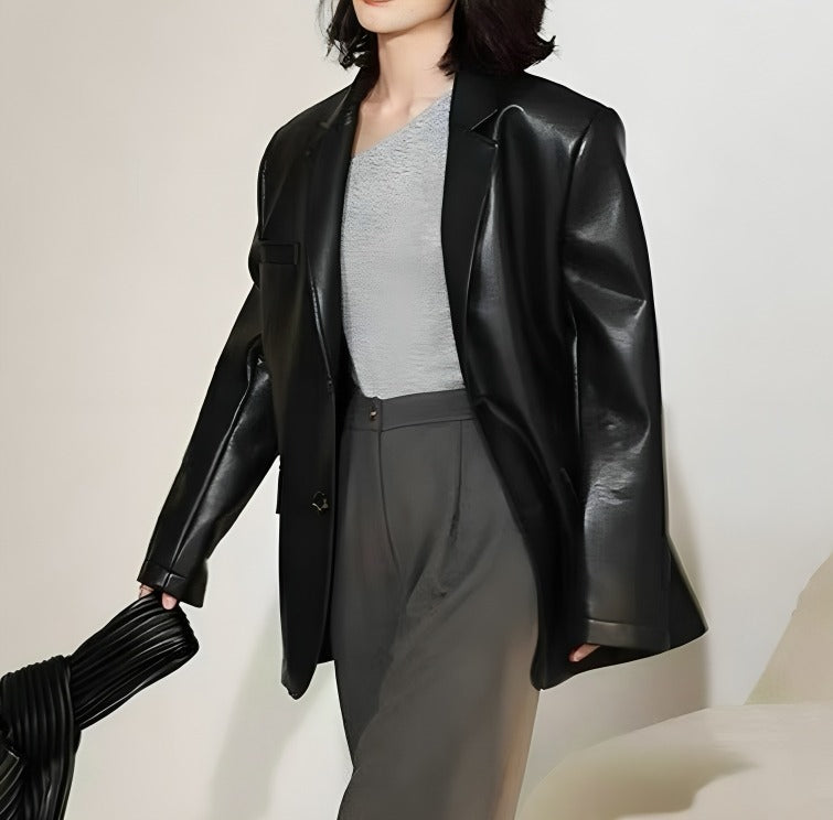 Faux Leather Masculine Blazer